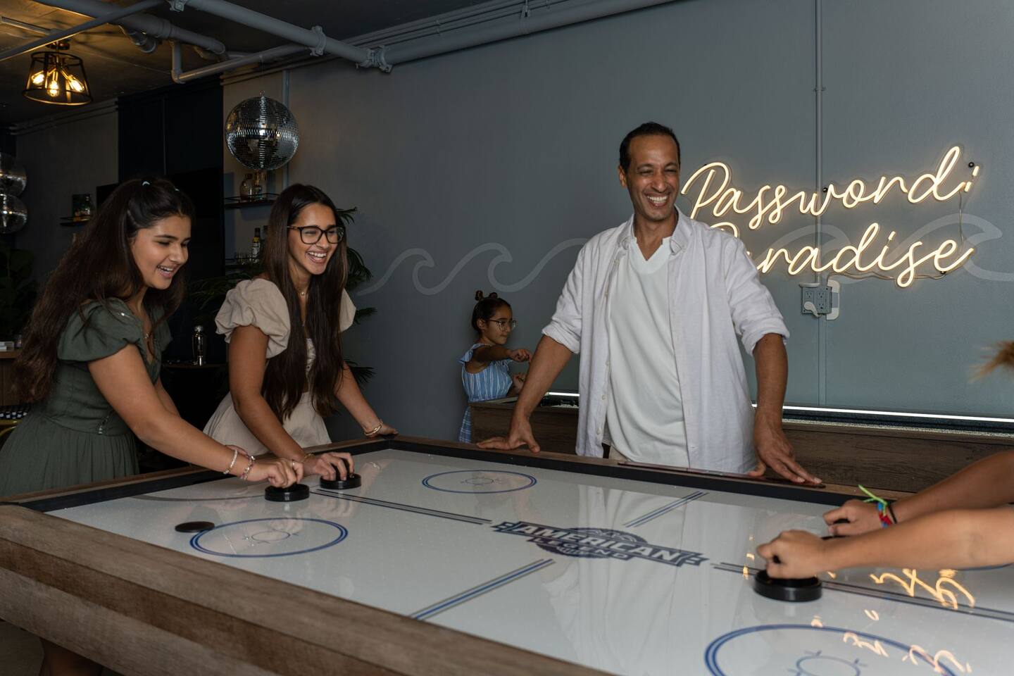 🐢 Welcome to Turtle Cove: Your Keys Adventure Awaits! Escape to Turtle Cove, your ultimate luxury retreat in the Florida Keys! This stunning 3-bedroom, 3-bathroom property offers everything you need for an unforgettable vacation. Wake up to gorgeous ocean views and enjoy your morning coffee on the balcony. Spend your days soaking up the sun at the community pool, utilizing the dock access for your boat, or relaxing in the beautifully designed outdoor areas. Gather the family for a memorable meal with al fresco dining under the stars. But the real secret lies inside: Retreat to your very own private entertainment haven! This unique space features a speakeasy lounge, karaoke station, bar, and high-end games like shuffleboard and air hockey. With easy patio access leading to a fire pit and cornhole, the fun never stops! Layout: - Level 1: Private speakeasy / karaoke stage / games and garage - Level 2: Kitchen, family room, balcony w/dining area, and one queen bedroom/bath - Level 3: Primary king suite, double-queen bedroom, laundry, and seating balcony. Book Turtle Cove and secure your premium slice of paradise—where adventure meets luxury!